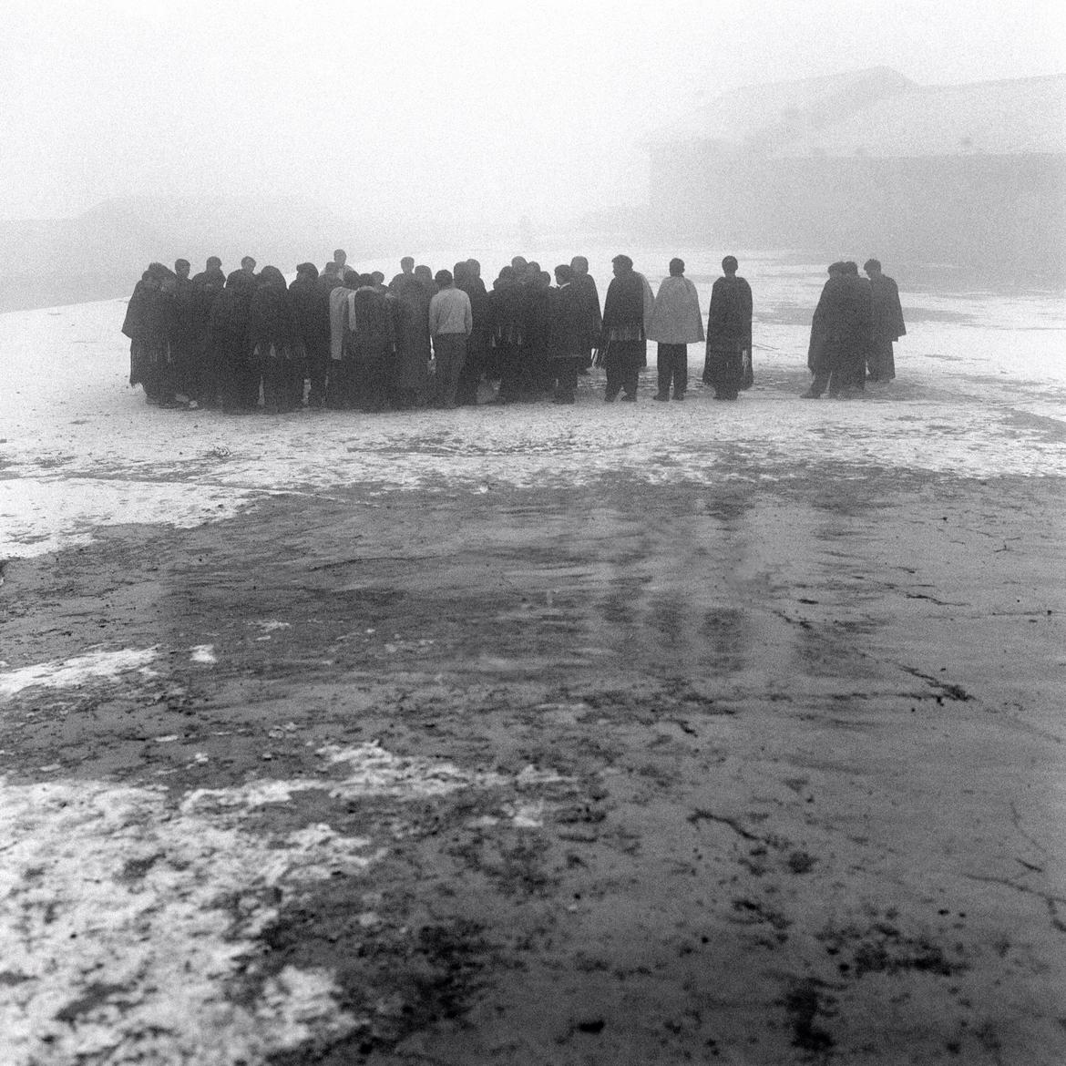 La serie di cui qui esponiamo alcuni esemplari, dedicata al popolo degli Yi di Liangshan, lo ha reso famoso e gli ha fatto vincere la medaglia di eccellenza Motherjones per la fotografia documentaria nel 1999. Yi è il nome di una minoranza etnica e Liangshan è un'area montagnosa fra lo Sichuan, la patria di Li Lang, e lo Yunnan. Mi chiedo però se Li Lang si senta veramente un fotografo 'documentarista'. E' indubbio che le immagini riproducano le abitudini di vita degli Yi: il loro spostarsi a piedi da un luogo all'altro, il riposo sulla nuda terra quando si sentono stanchi, la passione smodata per i forti liquori locali, il gusto di farsi fotografare insieme agli amici. A me però sembra che il filo conduttore condiviso da ogni scatto più che una ricerca antropologica o sociologica sia l'intenzione di esaltare lo spirito di quei montanari e la loro spontanea capacità di convivere con l'ambiente naturale, spesso assai severo. Questa gente si muove nel paesaggio innevato come i pesci nell'acqua. Non ha paura della solitudine, sa dove andare e come difendersi dal freddo, grazie a un pesante poncho di lana che diventa alla bisogna una coperta, ed è in grado di attraversare un fiume camminando spavaldamente nell'acqua. Trova piacere in attività semplici, giocose, come pattinare sul ghiaccio con le semplici scarpe o assistere a una rappresentazione teatrale all'aperto. La sua sopravvivenza è fondata su abilità e conoscenze ormai dimenticate dalla gente di città. Li Lang sente la nostalgia di quella sapienza che è il risultato di migliaia d'anni di intimità con la terra. E' un sapere fatto di tanti piccoli accorgimenti mutuati dalla secolare simbiosi con l'ambiente, che consentono di smussarne gli aspetti più ostici.