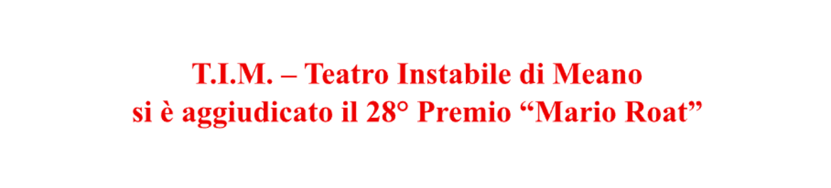 Andrea Coppi (scenografo) e dal giornalista e critico teatrale Fabio Lucchi, ha assegnato il massimo riconoscimento - Premio “Mario Roat” - a T.I.M. – Teatro Instabile di Meano. La scelta dei giurati ha premiato l'allestimento di «QUATTRO