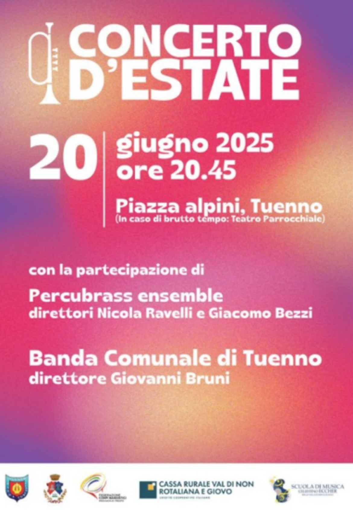 Piazza Alpini di Tuenno (in caso di pioggia il concerto al teatro parrocchiale di Tuenno)