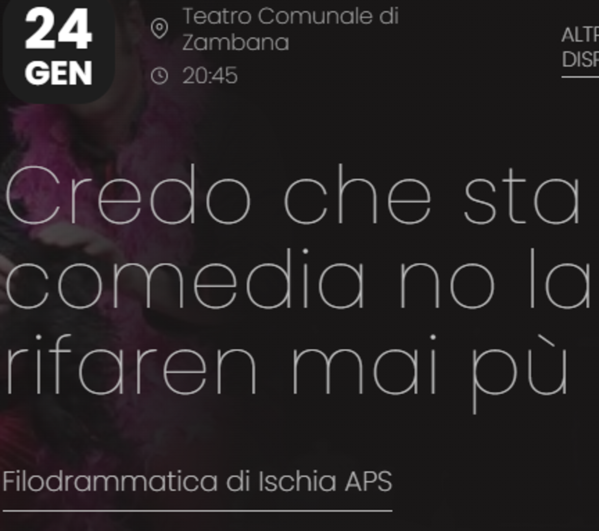 Il titolo – “Credo che sta comedia no la rifaren mai pù” – già da solo delinea il perimetro di una commedia umoristica che vuole dileggiare il mondo del teatro amatoriale. Che poi è il nostro mondo, sperando non diventi autobiografica. La storia è quella di una sgangherata compagnia teatrale che, senza mostrare alcuna esperienza, avvia l’allestimento di uno spettacolo drammatico che si rileverà più difficile del previsto.