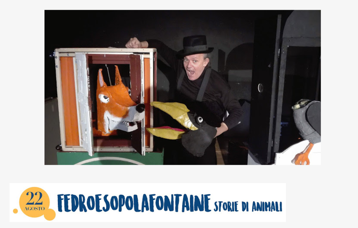Da ogni finestra escono coppie di animali (il corvo e la volpe, il cane ed il lupo, la lepre e la tartaruga) che in dialogo diretto raccontano le loro storie. Ognuno di questi passaggi è accompagnato con la chitarra e cantato dal vivo dall'attore - animatore che così facendo coinvolge, in giochi sonori spiritosi, il pubblico presente. Ogni storia è contraddistinta da un colore che definisce l'ambiente della storia raccontata.