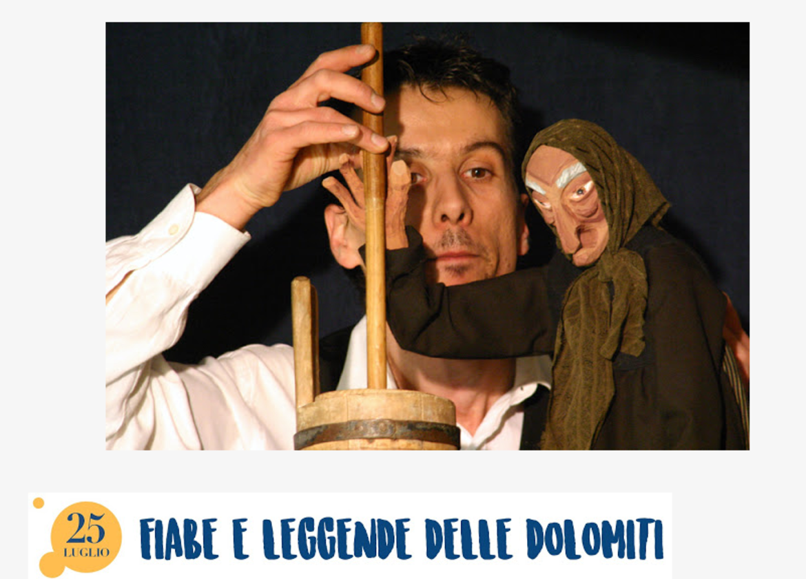 o spettacolo mette in scena fiabe, leggende e racconti della tradizione dolomitica, tra cui I Giganti di Pitcevert, Il Fuso d’Oro, La Strega Casara, La Caora Barbantana, Lo Schratl e La Miniera di Valcava.