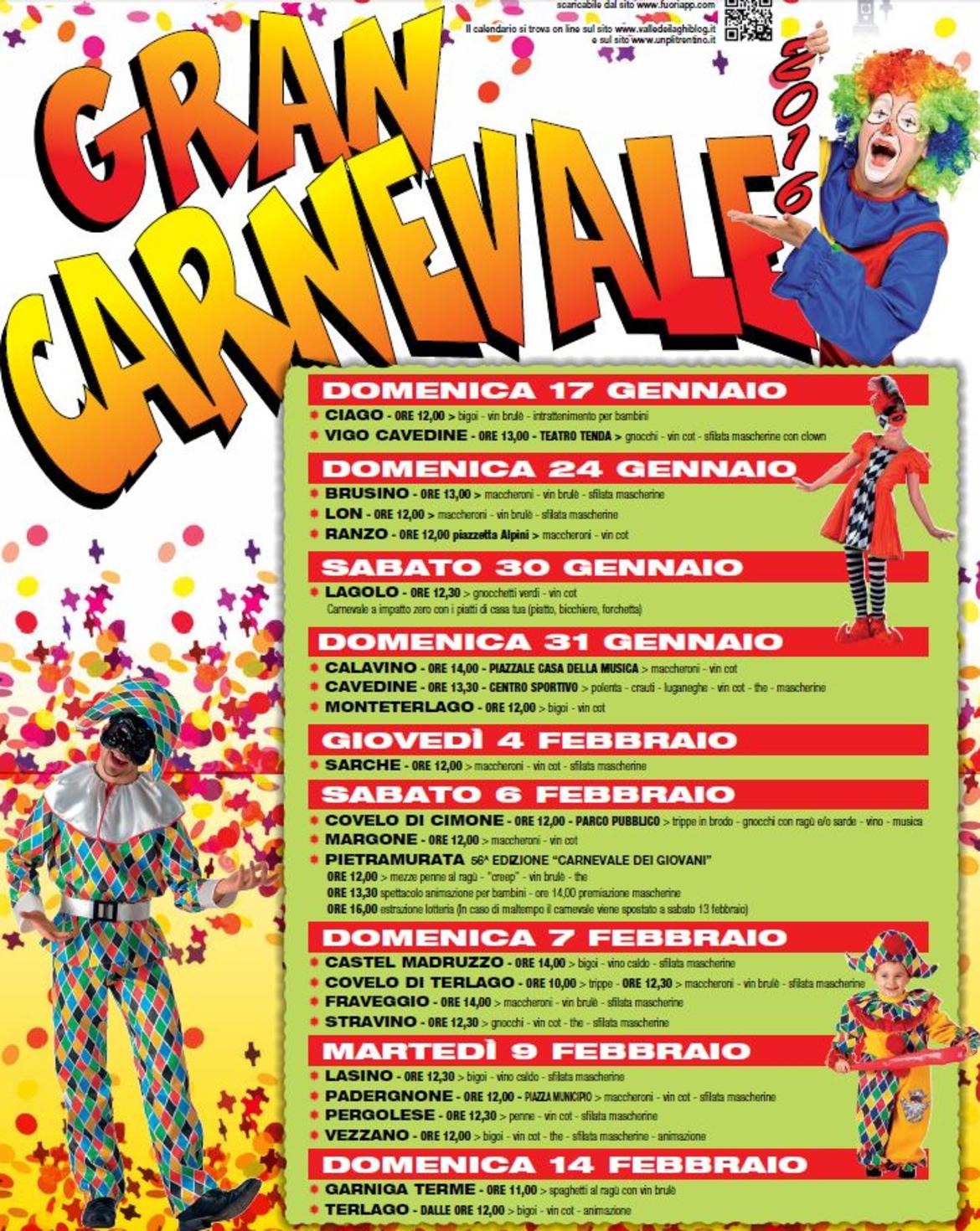 - ore 16,00 estrazione lotteria (In caso di maltempo il carnevale viene spostato a sabato 13 febbraio)