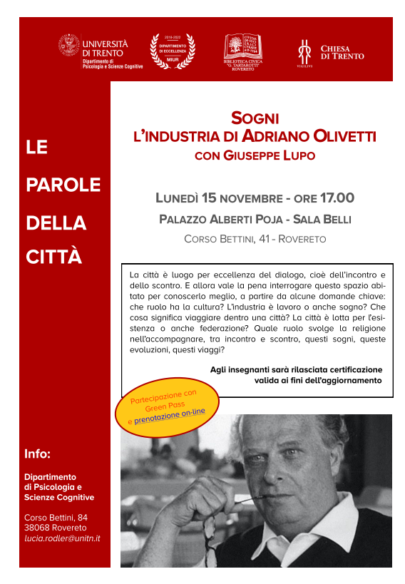 Il ciclo sulle “parole” promosso dal Dipartimento di Psicologia e Scienze cognitive dell’Università di Trento, dalla Biblioteca civica “G. Tartarotti” di Rovereto e dall’Arcidiocesi di Trento.