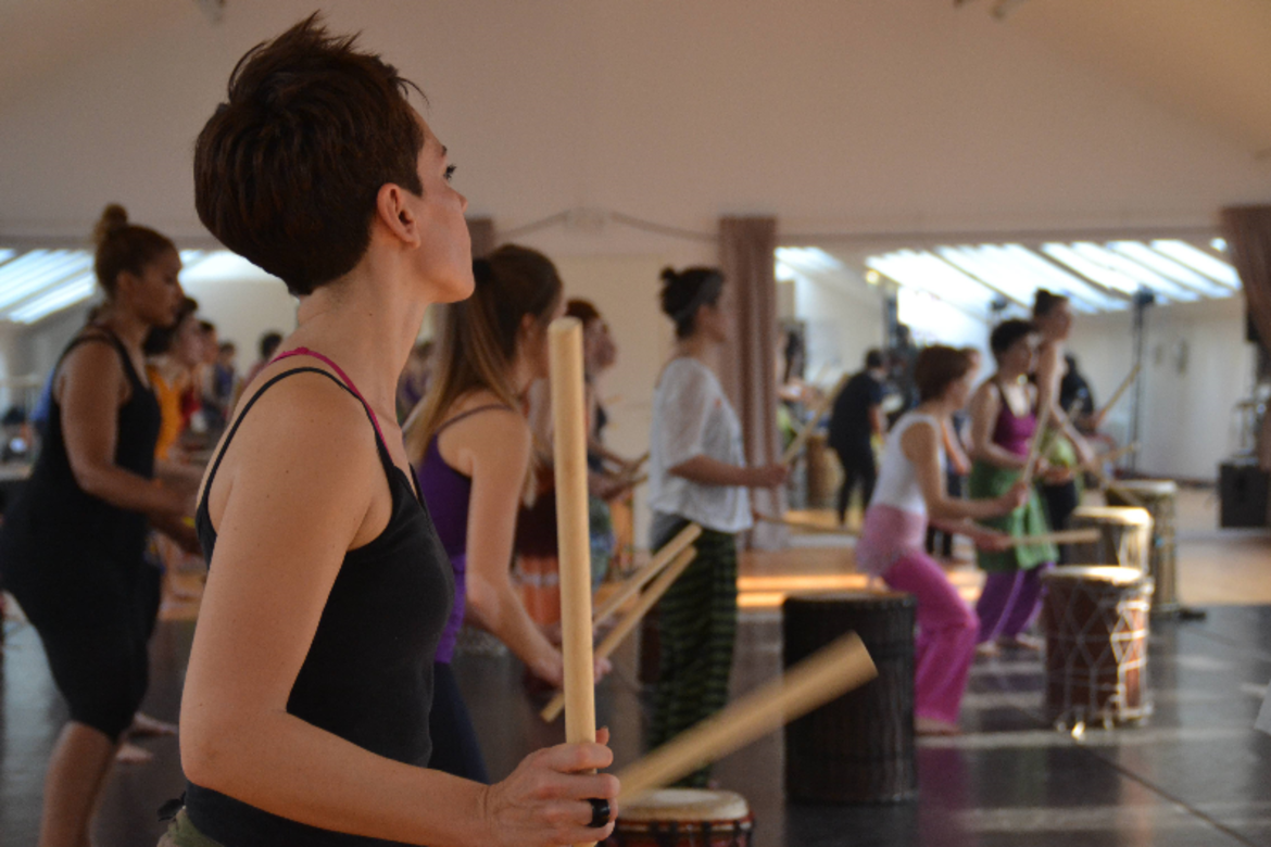 Un meraviglioso stage di Danza Afro dove ciascun partecipante balla e suona il proprio tamburo