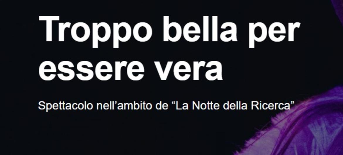 La Notte della Ricerca ritorna! Dopo il rinvio per maltempo a settembre, è stata riprogrammata la rappresentazione dello spettacolo “Troppo bella per essere vera”, parte integrante de “La Notte della Ricerca“.