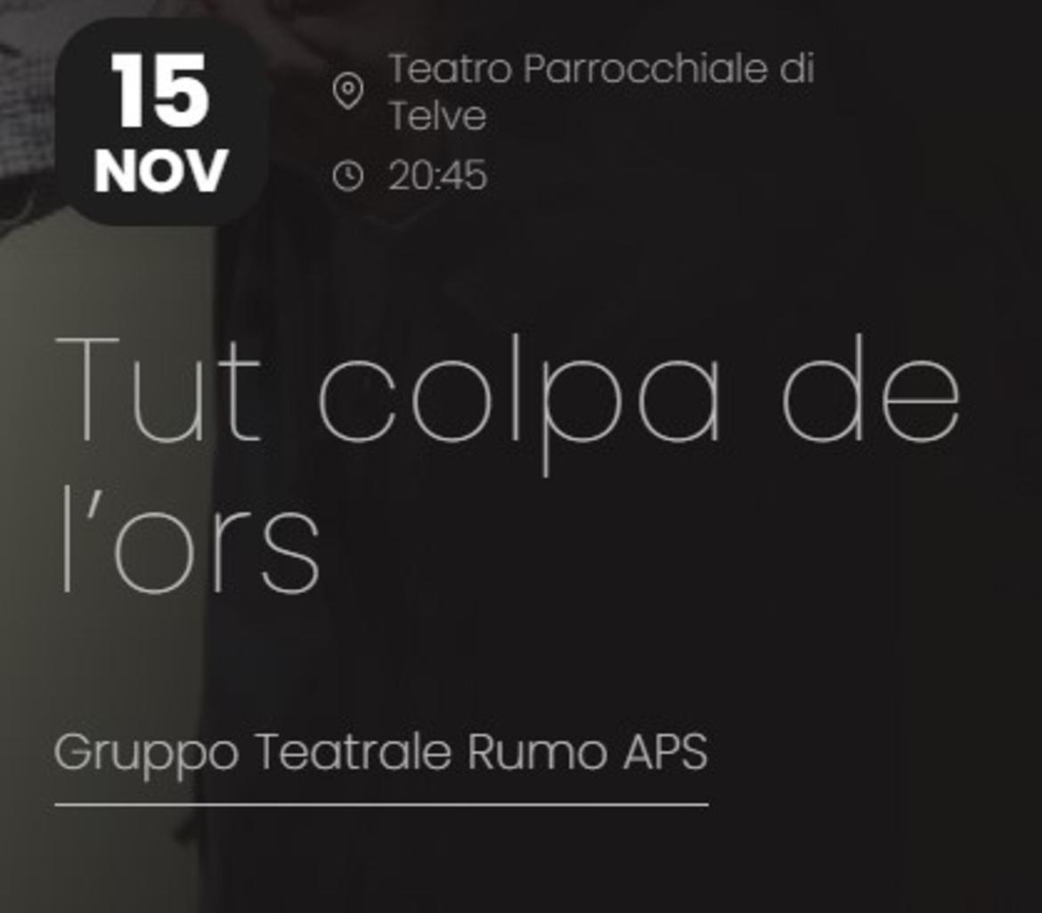 Il tema è dei più attuali e chiacchierati. I personaggi dai toni familiari ci faranno sorridere per la loro somiglianza ai veri protagonisti delle vicende che spesso interessano le nostre valli, e che spesso coinvolgono TV, giornali e il famoso “internet” ogni volta che si parla del tema dei “plantigradi”. Una commedia dai tratti pittoreschi, che lega assieme con simpatia, stereotipi e pregiudizi, valligiani e cittadini, animalisti e cacciatori, carnivori ed erbivori, un po’ di politica e tanto, tanto altro. Il tutto condito da tante risate e un po’ di sana leggerezza, che è sempre un’ottima medicina a tanti mali! Vi aspettiamo per vedere se davvero l’è “Tut Colpa de l’ors”!