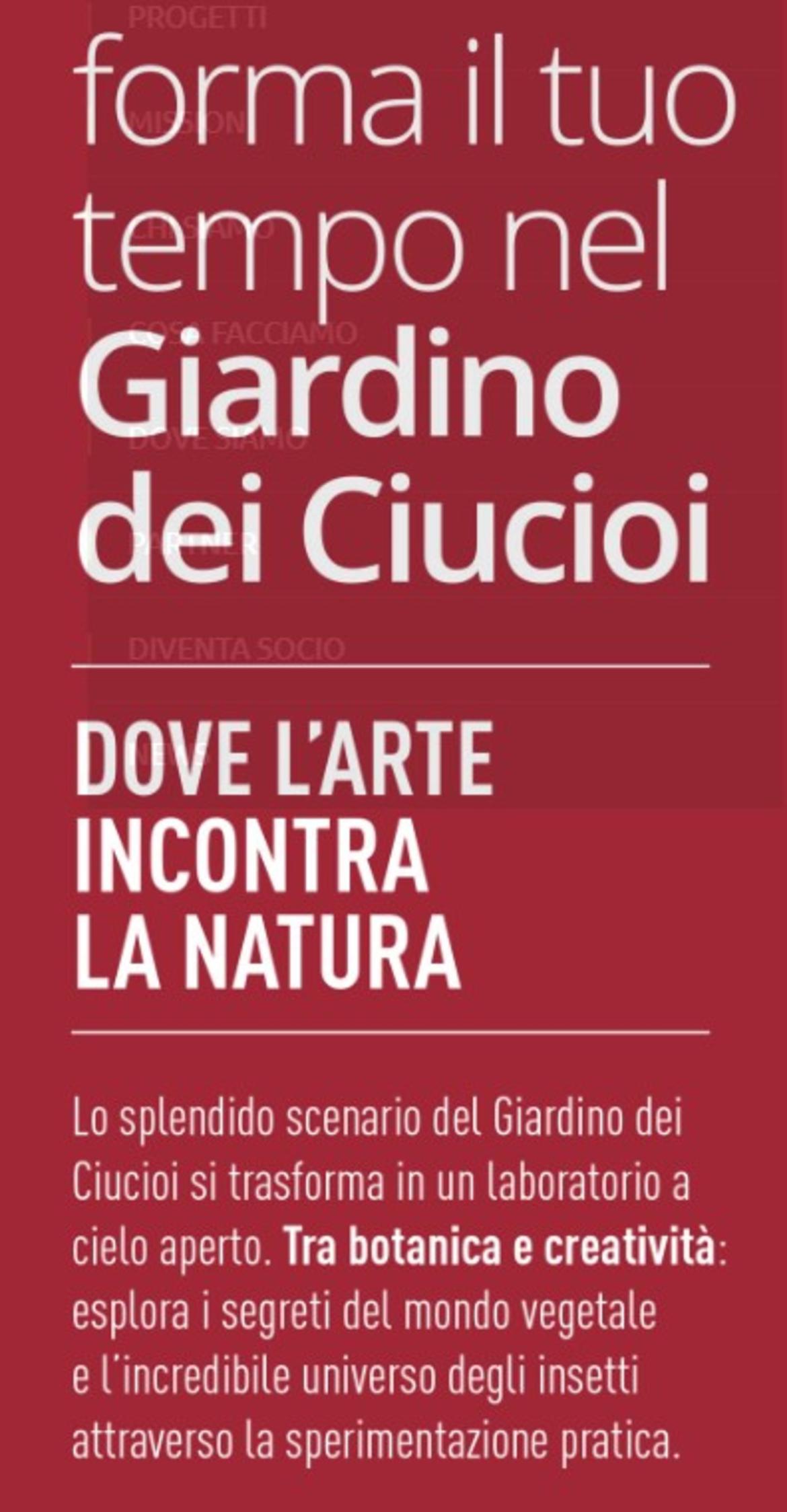 Per il 2026, il Giardino dei Ciucioi a Lavis (Tn) si trasforma in un laboratorio a cielo aperto. Unisciti a noi per un viaggio tra botanica e creatività: esplora i segreti del mondo vegetale e l’incredibile universo degli insetti attraverso la sperimentazione pratica.