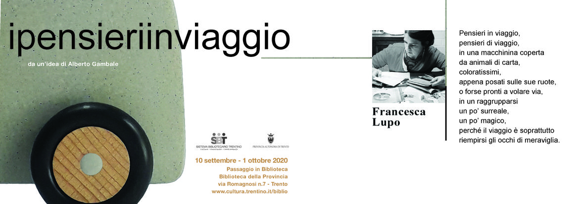 Francesca Lupo utilizza la tecnica del collage: crea, sull’oggetto dato di forma rotondeggiante e di colore grigio, una composizione ricca di colore, di apparente movimento e di ridefinizione delle forme complessive. Animali di carta si appoggiano sulla piccola automobile come se fosse una nuova Arca di Noè: appaiono in attesa, osservano il mondo, ci osservano, guardano il cielo. Il loro viaggio sembra essersi fermato un istante; forse per dare a noi il tempo di guardare quest’insieme così variopinto, perfetto come solo la natura sa esserlo e per ricordarci invece della nostra imperfezione e del nostro modo disattento di vivere. O forse solo per meravigliarci perché come dice Francesca “il viaggio è soprattutto riempirsi gli occhi di meraviglia”, basta saper guardare.