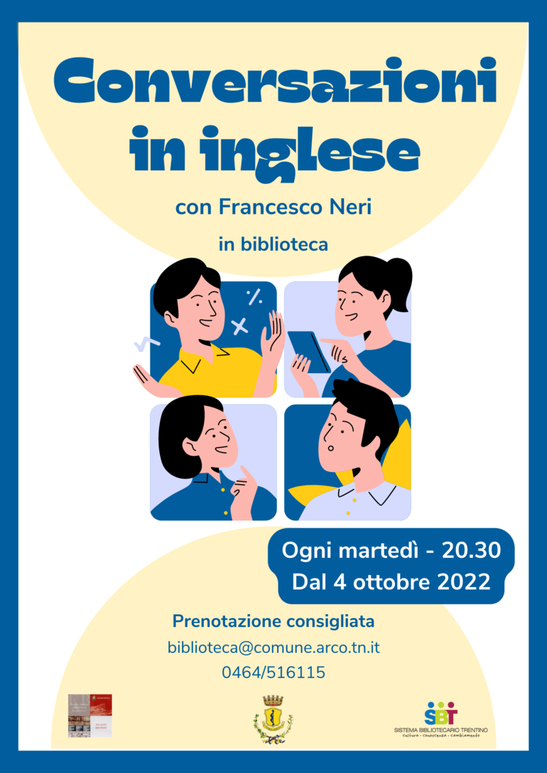 Ogni martedì a partire dal 4 ottobre 2022 potrete partecipare agli incontri di conversazione in inglese per adulti, condotte da Francesco Neri.