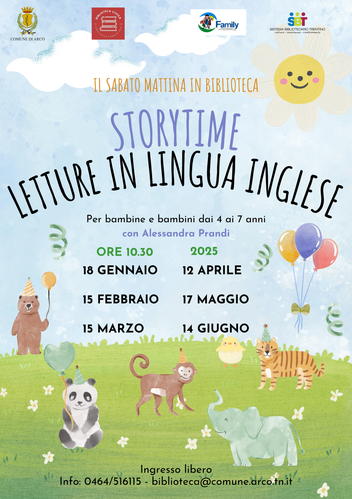 Alessandra Prandi è insegnante e lettrice in lingua inglese con molti anni di esperienza. Le sue letture sono sempre state molto apprezzate tra gli utenti della biblioteca di Arco perché sa unire l'insegnamento della lingua al gioco, per imparare divertendosi!