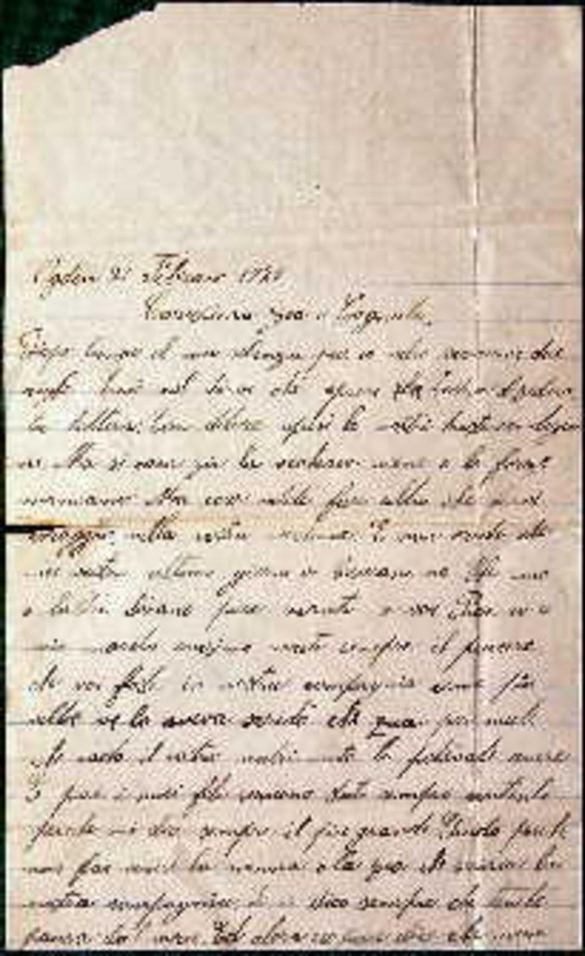 - Gius Luigi - Vulcan, li 10 Setembre 1882. Carisima moglie Con questa ti notifico lo stato di mia salute