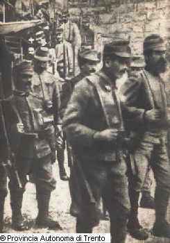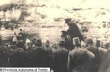 CESARE BATTISTI FRA I MILITARI AUSTRIACI PRIMA DELL'ESECUZIONE