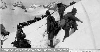 DIFFICOLTÀ DEI TRASPORTI SULLE NEVI E SUI GHIACCI DELL'ADAMELLO DURANTE L'AZIONE PER LA...
