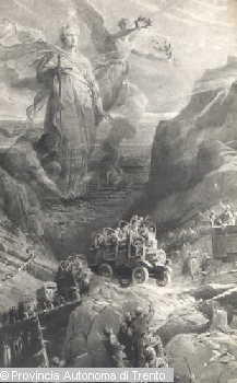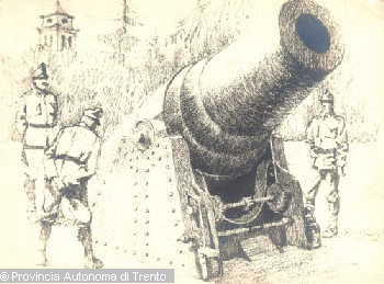 DISEGNO RAFFIGURANTE IL BOTTINO DI GUERRA DI PIAZZA DANTE A TRENTO NEL 1917
