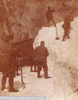 DOLOMITI DI SESTO. CIMA UNDICI. MILITARI AUSTRIACI AL LAVORO IN UNA TRINCEA