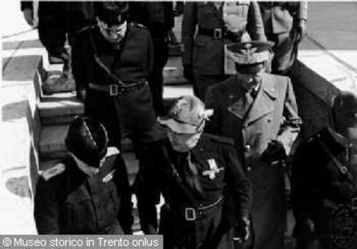 - TRENTO, DOSS TRENTO. AUTORITÀ MILITARI PRESSO IL MONUMENTO A CESARE BATTISTI IN OCCASIONE DEL 19. RADUNO NAZIONALE DEGLI ALPINI. 24 APR. 1938