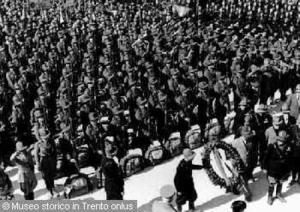 - TRENTO, DOSS TRENTO. FOLLA E SCHIERAMENTO DI ALPINI IN OCCASIONE DEL 19. RADUNO NAZIONALE. 24 APR. 1938