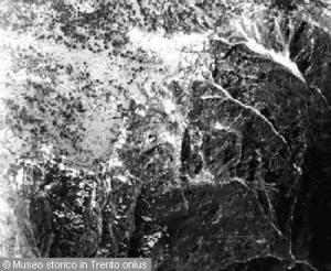 - VALLE DEI CONCEI, GRUPPO DEL CADRIA, VERSANTE EST DEL MONTE VIES. VEDUTA AEREA. 13 FEB. 1918