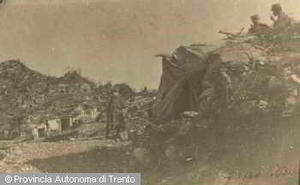 PASSO BUOLE. ACCAMPAMENTO MILITARE, SI DISTINGUONO UOMINI IN DIVISA. 1916