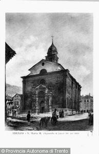 Acquerello raffigurante "Trento, chiesa di S. Maria Maggiore" di J. Alt (1842)