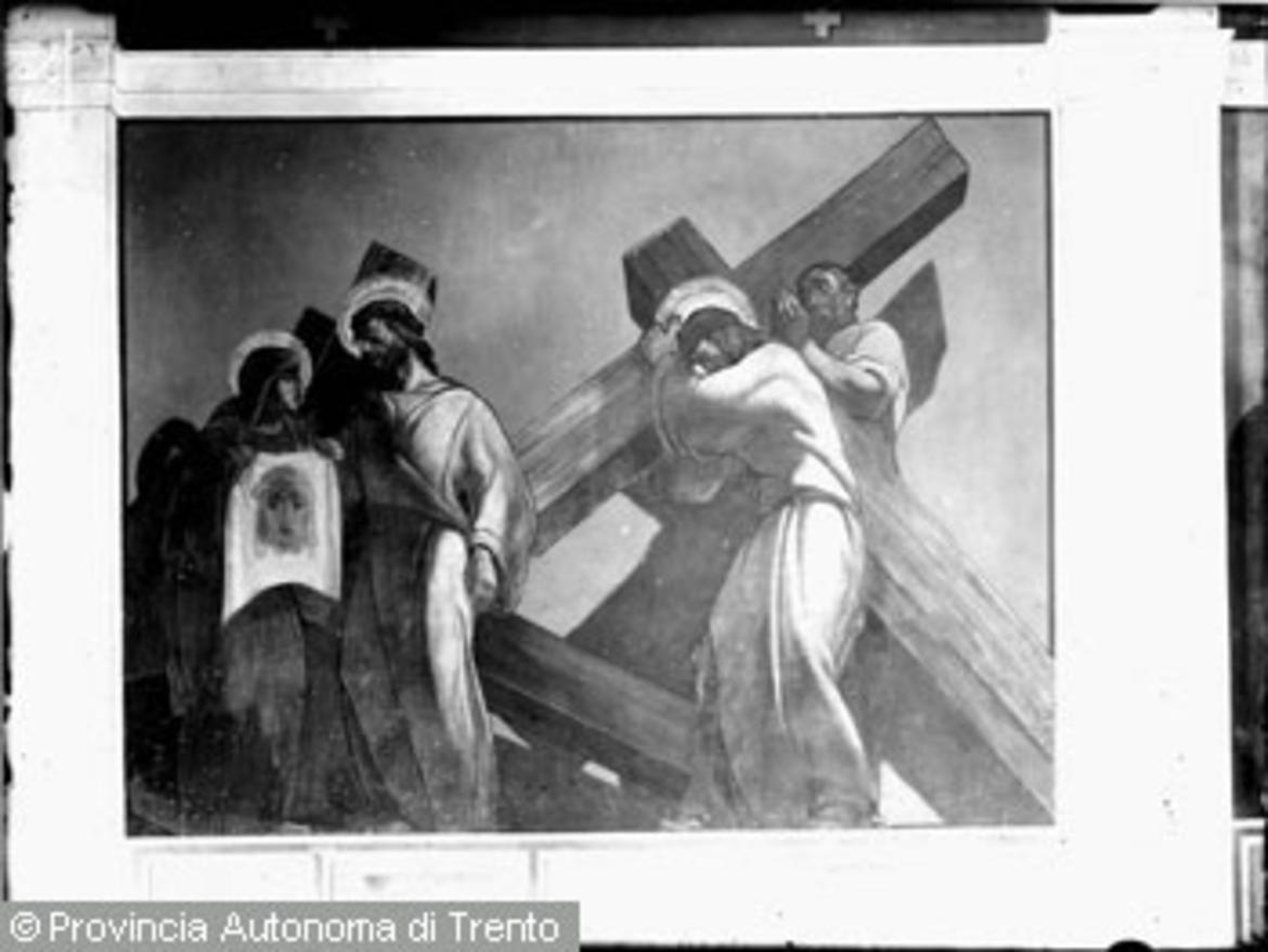 Agnedo, chiesa della Madonna della Mercede, dipinto di P. Casarini raffigurante "la Veronica e Cristo portacroce" (1927)
