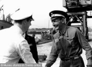 - BORDEAUX (FRANCIA), BASE ATLANTICA ITALIANA. IL CAPITANO DI CORVETTA LUIGI LONGANESI CATTANI SALUTA IL TENENTE ZWARG. 1940