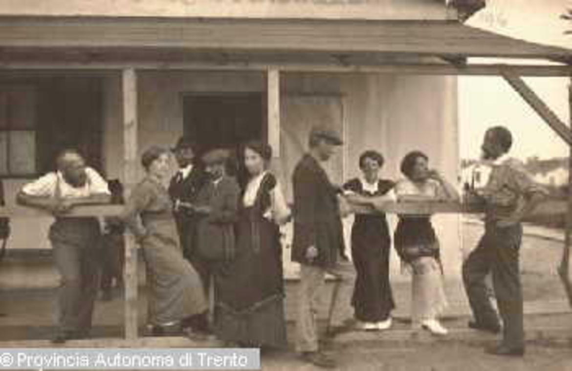 - KATZENAU, LIENZ (AUSTRIA). GRUPPO DI DONNE E UOMONI DAVANTI ALLA BARACCA 17 DEL CAMPO DI INTERNAMENTO. 1915-1918