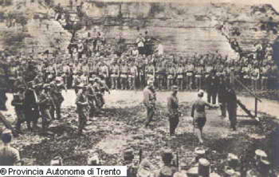 - TRENTO. CASTELLO DEL BUONCONSIGLIO. FOSSA DELLA CERVARA. CESARE BATTISTI CONDOTTO SUL LUOGO DELL'ESECUZIONE. 1916 LUG. 12