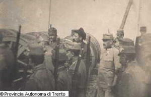 TRENTO. CASTELLO DEL BUONCONSIGLIO. CESARE BATTISTI CONDOTTO SUL LUOGO DELL'ESECUZIONE. 1916 LUG. 12