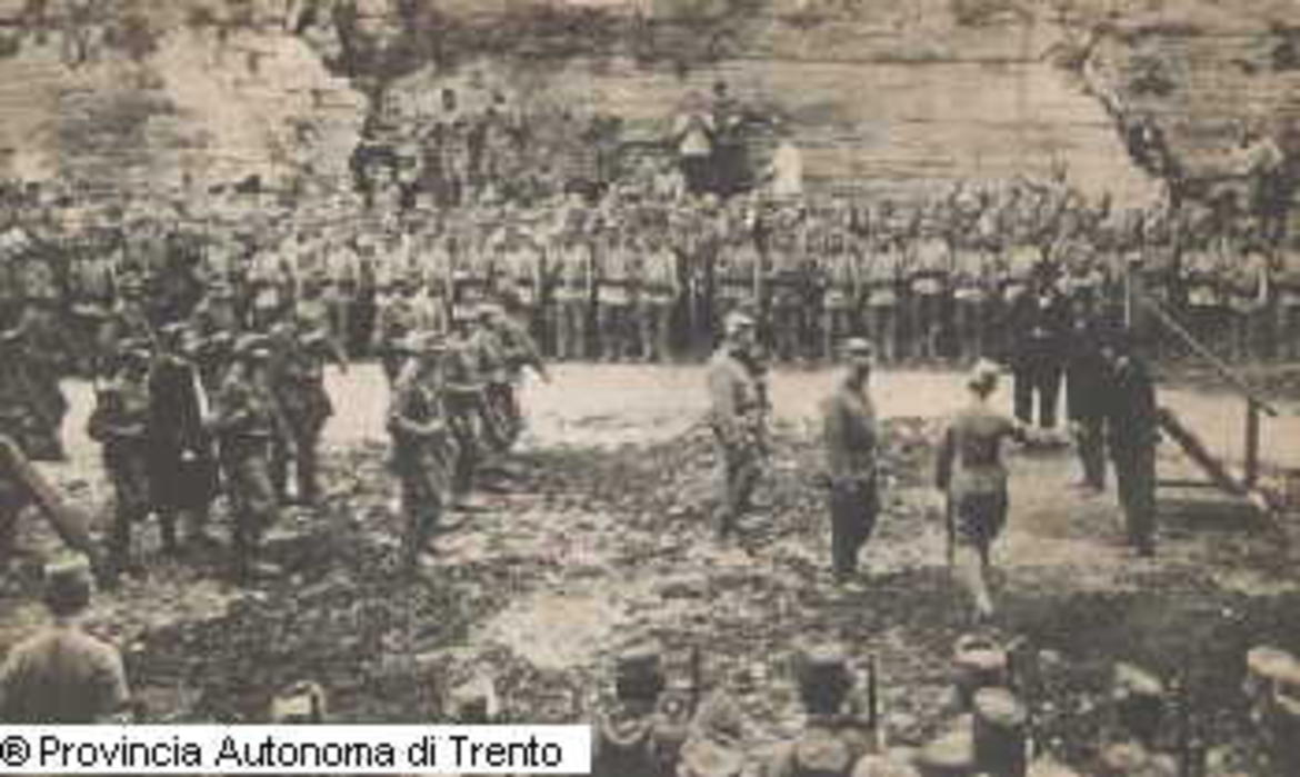 TRENTO, CASTELLO DEL BUONCONSIGLIO, FOSSA DELLA CERVARA. CONSEGNA DI CESARE BATTISTI PER L'ESECUZIONE. 1916 LUG. 12