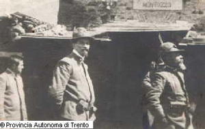 MONTOZZO. CESARE BATTISTI DAVANTI AL COMANDO DELLA 50° COMPAGNIA DELL'EDOLO