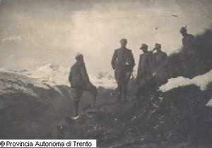 - MONTOZZO. CESARE BATTISTI CON ALTRI MILITARI DELLA 50° COMPAGNIA DELL'EDOLO. AGO. 1915