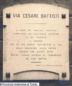CUNEO. LAPIDE IN MEMORIA DI CESARE BATTISTI