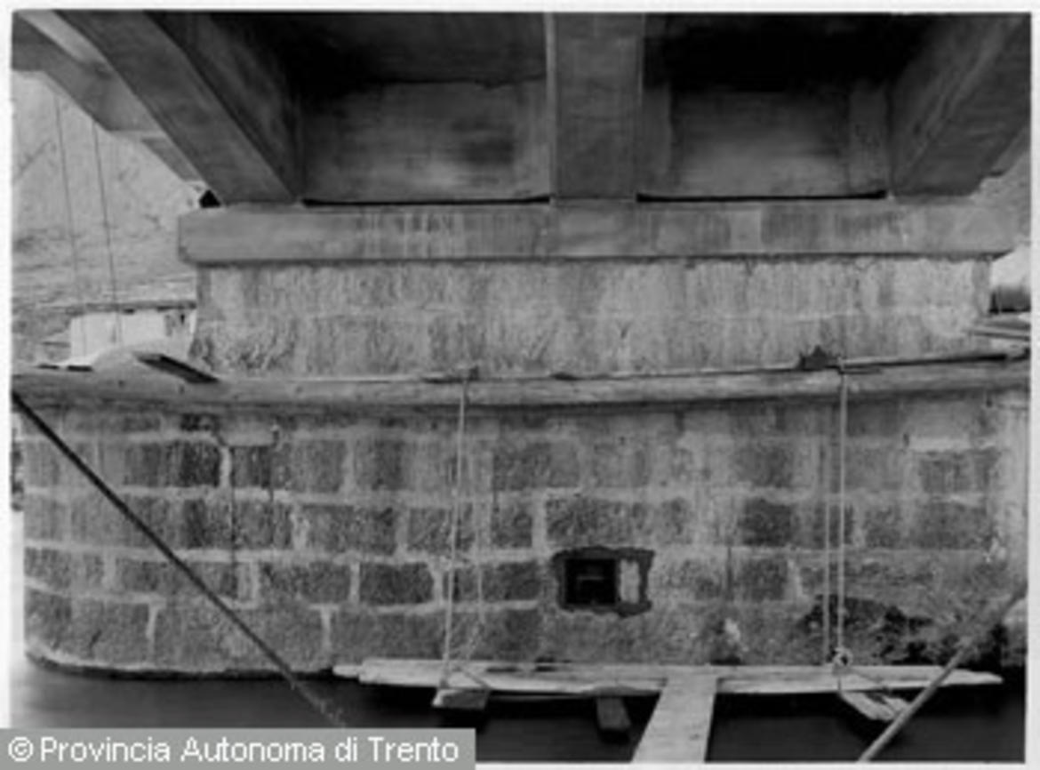 - Cantiere per la costruzione del ponte sul torrente Sarca, particolare di un pilone, Pietramurata (TN)