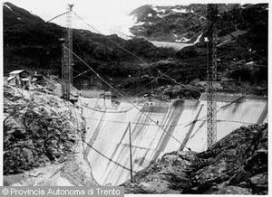 Cantiere per la costruzione della diga di Careser, Val di Pejo, Trentino