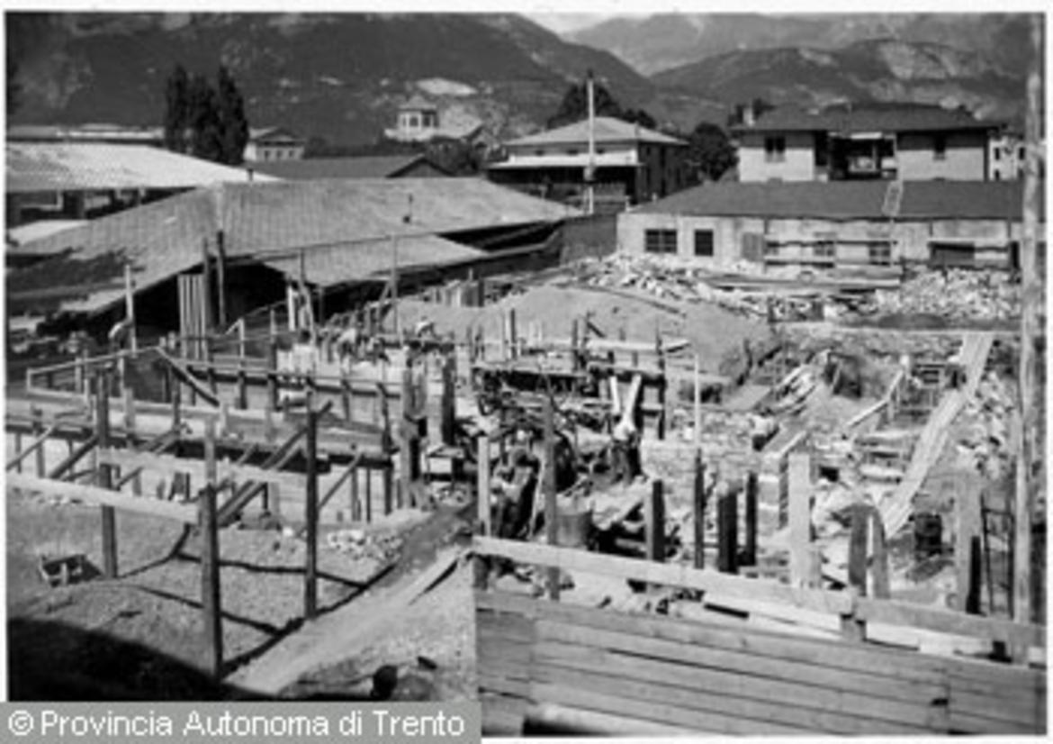 Cantiere per la costruzione di un edificio, via Malfatti, Trento