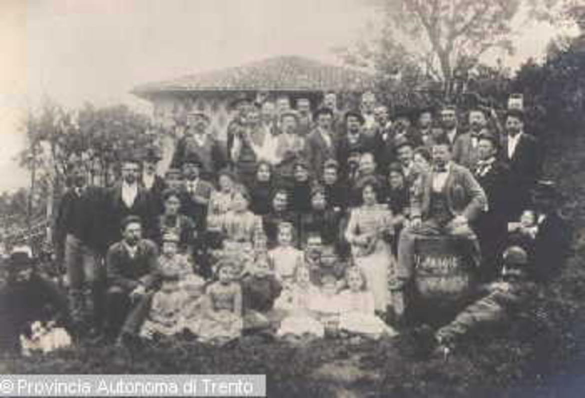 ALBAREDO. FOTO DI GRUPPO CON DAMIANO CHIESA BAMBINO CON IL PADRE. 4 MAG. 1902