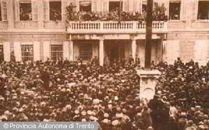 FIUME (RIJEKA, CROAZIA). VEDUTA DELLA PIAZZA GREMITA DI GENTE DURANTE IL DISCORSO DI GABRIELE D'ANNUNZIO. 3 GEN. 1921