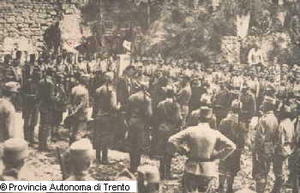 - TRENTO. CASTELLO DEL BUONCONSIGLIO. FOSSA DELLA CERVARA. L'AVVENUTA ESECUZIONE DI CESARE BATTISTI. 1916 LUG. 12