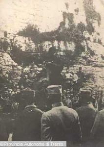 TRENTO. FOSSA DELLA CERVARA, CASTELLO DEL BUONCONSIGLIO. PREPARATIVI DEL BOIA PER L'ESECUZIONE DI FABIO FILZI. 12 LUG. 1916