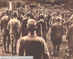 - TRENTO. FOSSA DELLA CERVARA, CASTELLO DEL BUONCONSIGLIO. FABIO FILZI ASCOLTA LA LETTURA DELLA SENTENZA. 12 LUG. 1916