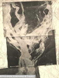 COMPOSIZIONE DI TRE FOTO AEREE RAFFIGURANTE UNA ZONA DEL CORSO DEL FIUME PIAVE. 1918