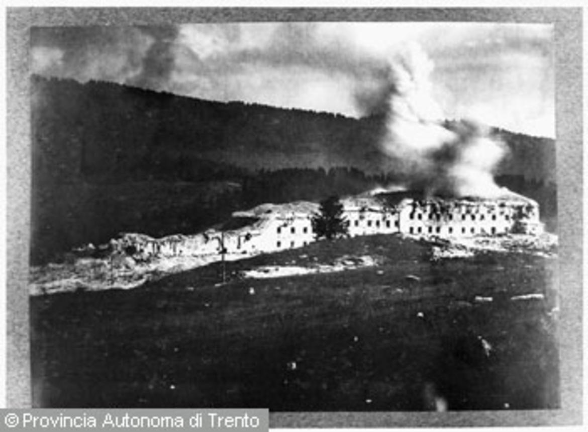 Forte Verla - durante il secondo cannoneggiamento (caduta di un proiettile da 30,5 cn sul tetto)