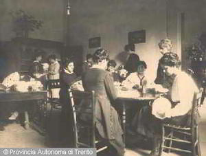 FIRENZE. DONNE INTENTE ALLA CONFEZIONE DEI PACCHI PER IL FRONTE NELLA SEDE DEL VOLONTARIO TRENTINO