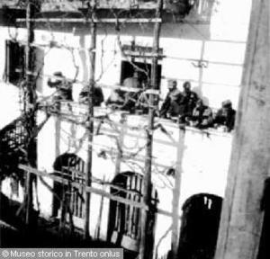 - VALSUGANA, CALDONAZZO (TN). GRUPPO DI MILITARI DURANTE IL RANCIO SUL TERRAZZO DELL'ALLOGGIO. 1915