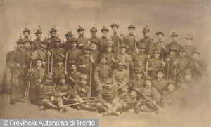 GRUPPO DI UOMINI IN DIVISA MILITARE APPARTENENTI AL BATTAGLIONE NEGROTTO, SI RICONOSCE CESARE BATTISTI