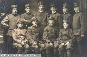 GRUPPO DI VOLONTARI TRENTINI TRA CUI CARLO FIORIO, NINO ANDREATTA, CARLO RICCABONA, GIUSEPPE E MANLIO POLLINI, CARLO POLI, SIMONE LEONARDI, FRANCESCO CONCI, VITTORIO BERNARD
