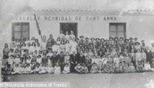- S. ANNA, S. PAOLO (BRASILE). GRUPPO DI STUDENTI EMIGRATI ORIGINARI DEL TRENTINO DAVANTI ALLA SCUOLA. 1923 CA.