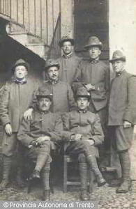 - VALTELLINA, MORBEGNO (SO). GRUPPO DI VOLONTARI TRENTINI, SI DISTINGUONO ETTORE TAMANINI, ANDREA ZANIBONI, ARTURO AVANCINI, CARLO FIORIO, GINO BUFFA, GINO VILLA, ALEARDO PERINI. GIU. 1915